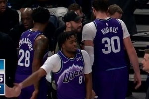 用力過(guò)猛!湯姆林跳球奮力一撥 將球打中自家籃筐