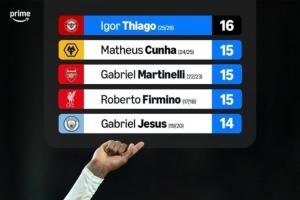 1?? 伊戈爾·蒂亞戈(布倫特福德)16球