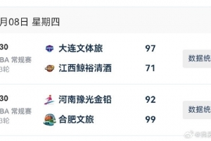 2025-2026賽季W(wǎng)CBA常規(guī)賽今日僅兩場B組比賽。B 組頭兩名合肥女籃和大連女籃均獲得勝利。