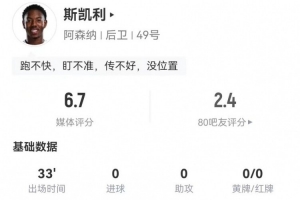 體育資訊1月9日訊 阿森納在本輪英超對陣?yán)锲?,斯凱利本場數(shù)據(jù)如下: