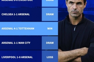 以下為阿森納本賽季英超對陣Big6球隊戰(zhàn)績: