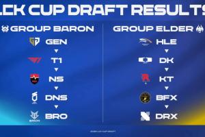 體育資訊1月9日訊 LCK杯新賽季分組出爐,遠(yuǎn)古巨龍組HLE、DK、KT、BFX、DRX,大龍組GEN、T1、NS、DNS、BRO。