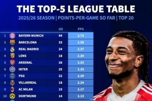 體育資訊1月9日訊 《轉會市場》統(tǒng)計了本賽季五大聯賽球隊場均拿分情況,拜仁、巴薩、皇馬分列前三。