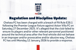 切爾西需在2026年1月12日周一之前就此次指控作出正式回應(yīng)。