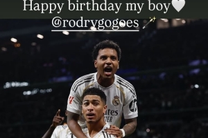 體育資訊1月10日訊 皇馬邊鋒羅德里戈在今日迎來了25歲生日,他的隊(duì)友貝林厄姆也通過社媒送上祝福。