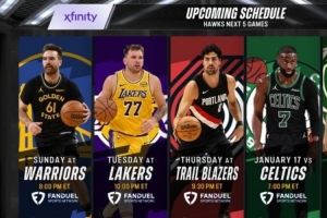 老鷹今天大勝掘金,轉(zhuǎn)播方給出球隊接下來5場賽程,對手分別是勇士、湖人、開拓者、凱爾特人和雄鹿。