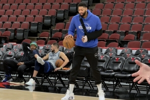 記者Mike Curtis報道,獨行俠剛在結(jié)束了賽前的投籃訓練。安東尼·戴維斯也出現(xiàn)在了球館,看起來心情不錯,盡管他的左臂被吊帶固定,手部也纏得很厚。