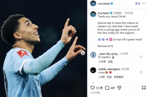 體育資訊1月11日訊 曼城在本輪足總杯10-1大勝埃克塞特城,里科·劉易斯在本場(chǎng)比賽中接過(guò)了隊(duì)長(zhǎng)袖標(biāo)并且獨(dú)造3球。