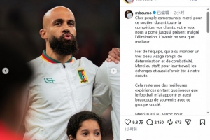 喀麥隆前鋒姆伯莫社媒寫道:“親愛的喀麥隆民眾,感謝你們在整個賽事期間給予的支持,你們的歌聲和吶喊一直支撐著我們走到現(xiàn)在,盡管我們被淘汰了,但未來只會更好?!?/p>