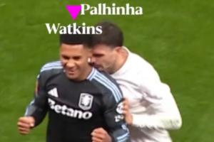 在終場哨聲吹響后,維拉前鋒沃特金斯來到底線面向看臺慶祝,看似有意無意的身體接觸惹惱了帕利尼亞,后者將沃特金斯推搡出場外,瞬間點(diǎn)燃兩隊(duì)球員的情緒。