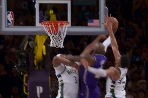 比賽最后時刻30秒,詹姆斯在一次突破中被字母哥蓋帽,在最后一次進(jìn)攻中又被字母哥搶斷。