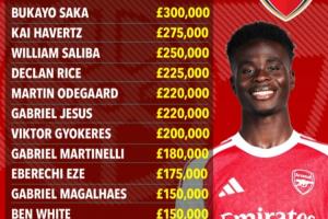 體育資訊01月11日訊 多方報道稱阿森納與薩卡敲定新合約,他將在阿森納拿到30萬鎊的隊內(nèi)頂薪,《太陽報》羅列了阿森納隊內(nèi)的最新周薪排名。