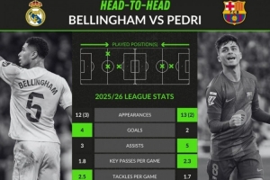 體育資訊1月12日訊 皇馬和巴薩將在本輪西超杯決賽相逢,whoscored也對比了兩隊(duì)中場核心的西甲關(guān)鍵數(shù)據(jù)。