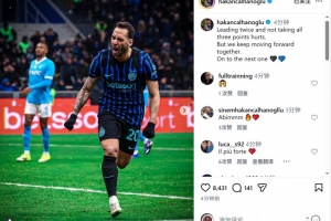 恰爾汗奧盧賽后在社交媒體上寫道:“兩度領(lǐng)先卻未能全取三分,令人扼腕。但我們?nèi)詫y手前行。專注于下一場(chǎng)。”