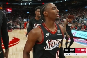 想啥呢?蘭德爾表情古怪 神情“著迷”地上下來回掃視文班全身!
