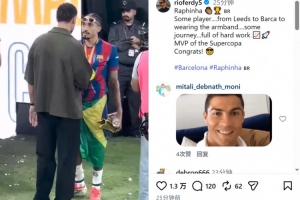 費(fèi)迪南德參與了這場比賽的解說工作,他在社交媒體上曬出賽后與拉菲尼亞交流的視頻,并配文:“拉菲尼亞,真是個(gè)了不起的球員,從利茲聯(lián)到巴薩,再到如今戴上隊(duì)長袖標(biāo),這是一段充滿汗水和努力的旅程 ???? 西超杯MVP! 恭喜!”