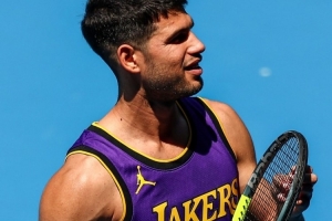 體育資訊1月13日訊 據(jù)昨日?qǐng)?bào)道,西班牙網(wǎng)球名將、現(xiàn)男子單打排名第一的卡洛斯-阿爾卡拉斯在澳大利亞網(wǎng)球公開賽的訓(xùn)練中上身了湖人球星詹姆斯的23號(hào)球衣。