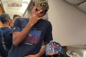 巴薩官方更新社媒動態(tài),曬出亞馬爾等球員在飛機(jī)內(nèi)與獎杯合影的視頻和照片,慶祝球隊(duì)奪冠。