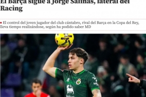 體育資訊1月15日訊 據(jù)《世界體育報》報道,對陣桑坦德競技的國王杯比賽,巴薩將會近距離考察對方陣中18歲左后衛(wèi)薩利納斯(Jorge Salinas)。