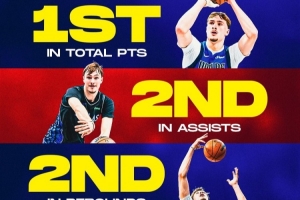 其中總得分第一、總助攻第二、總籃板第二、總搶斷第三、總封蓋第三。