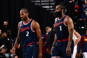 快船陣容中哈登35歲,萊昂納德34歲,比爾32歲,巴圖姆36歲,大洛37歲,博格丹32歲;籃網(wǎng)這邊小將眾多,特倫斯-曼恩28歲已是最大年齡。