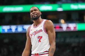 此役,杜蘭特出戰(zhàn)36分鐘,23投7中,三分5投0中,罰球5罰5中,得到19分7籃板3助攻3搶斷1蓋帽。