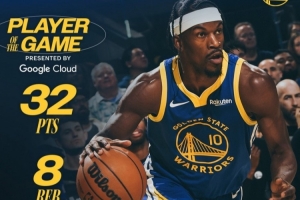 賽后,勇士官方發(fā)布本場(chǎng)最佳數(shù)據(jù)海報(bào):吉米·巴特勒當(dāng)選。