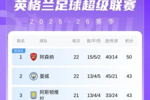 最新的積分榜方面:阿森納7分領(lǐng)跑,暫排第2的曼城本輪在曼市德比中0-2不敵曼聯(lián),先賽的情況下與維拉同積43分。明晨維拉主場(chǎng)迎戰(zhàn)埃弗頓,只要不敗就能升至第2。