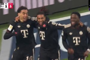 第88分鐘,奧利塞破門,穆西亞拉助攻,拜仁5-1↓