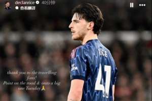體育資訊1月18日訊 在阿森納客場(chǎng)0-0戰(zhàn)平諾丁漢森林后,賴(lài)斯更新了社交媒體。