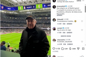 曾兩度執(zhí)教皇馬的現(xiàn)任巴西隊(duì)主帥安切洛蒂重返伯納烏,現(xiàn)場(chǎng)觀(guān)看了這場(chǎng)比賽,他在社交媒體上曬出照片,配文:“看到皇馬獲勝真是太開(kāi)心了!而且還能與我的(巴西足協(xié))副主席和國(guó)家隊(duì)總監(jiān)共同分享勝利的喜悅。”