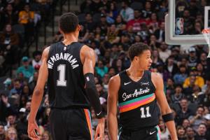 馬刺14號(hào)秀卡特·布萊恩特賽后接受了采訪,當(dāng)被問到認(rèn)為自己可以成長(zhǎng)為什么級(jí)別的球員時(shí),他說:“我認(rèn)為我可以成為世界第二好的防守球員,因?yàn)橐粋€(gè)身高7尺5寸、移動(dòng)速度像怪物一樣的球員(文班)在前面,我很難成為世界第一的防守球員?!?/p>