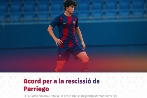 體育資訊1月21日訊 巴薩官方宣布和B隊(duì)20歲中場(chǎng)帕列戈(Marcos Parriego)解約。