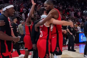 GIF-賽后杜蘭特擁抱謝潑德 拍拍腦袋 申京也來拍拍