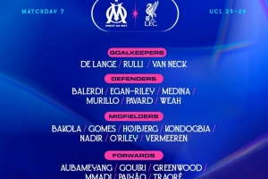 體育資訊1月21日訊 北京時(shí)間明天凌晨,馬賽將在歐冠聯(lián)賽階段第7輪比賽中主場對陣?yán)锲?,馬賽公布了此役的球員名單。