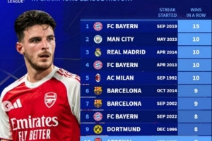 體育資訊1月21日訊 阿森納本賽季在歐冠豪取7連勝,德轉(zhuǎn)也盤點了歐冠歷史連勝紀錄榜,具體如下(日期為連勝開始時間):