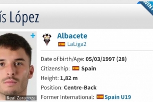 在路易斯·洛佩斯個(gè)人的德轉(zhuǎn)頁(yè)面中顯示,他已經(jīng)與1月21日加盟阿爾瓦賽特,合同有效期至2027年6月30日,轉(zhuǎn)會(huì)方式為自由身。