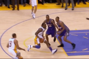 他的右手突破急停跳投和左手突破急停跳投,動(dòng)作甚至全然不同 ——左手突破急停跳投比較順勢(shì),收球即可;右手突破急停跳投時(shí),他通常會(huì)從雙腳平行起跳,空中扭轉(zhuǎn)到右肩靠前(還經(jīng)常要踢右腿保持平衡)。在進(jìn)攻端,幾乎沒(méi)有他做不出來(lái)的動(dòng)作。到最后,遇到不同防守,他的身體便像條件反射般轉(zhuǎn)換到進(jìn)攻狀態(tài),其速度之快甚至不需要調(diào)整。無(wú)論是背身單打、面筐切入、無(wú)球跑動(dòng)后接球繞掩護(hù)尋求攻擊,他都有無(wú)數(shù)花招可以展示。他的射程遠(yuǎn)達(dá)半場(chǎng)的任何地點(diǎn),體能支撐每場(chǎng)30次甚至40次的投籃。