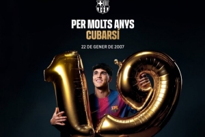 體育資訊1月22日訊 今天是巴薩中衛(wèi)庫巴西的19歲生日,巴薩官方為其送上祝福。