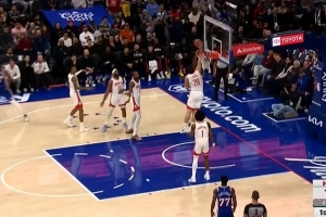 是個好防守!申京籃下強打恩比德造犯規(guī) 76人挑戰(zhàn)成功