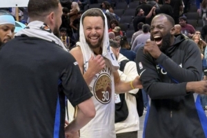 庫里、追夢(mèng)賽后與克萊場(chǎng)邊聚首,三人看起來都非常開心。