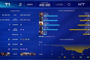 體育資訊01月23日訊 T1 2:0 KT,賽后數(shù)據(jù)面板顯示T1在落后13.9k經(jīng)濟(jì)差的情況下最終翻盤(pán)比賽。