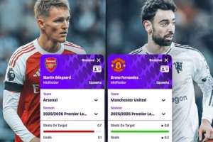 體育資訊1月23日訊 本輪英超將迎來焦點戰(zhàn)曼聯(lián)對陣阿森納,數(shù)據(jù)網(wǎng)站Squawka也盤點了兩隊中場厄德高、B費本賽季英超場均數(shù)據(jù)對比,具體如下: