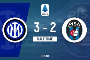 上半場補(bǔ)時4分鐘。半場戰(zhàn)罷,國米3-2比薩。