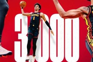 杰倫·約翰遜常規(guī)賽生涯總得分突破3000大關(guān)。