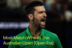 憑借本場勝利,德約科維奇職業(yè)生涯澳網(wǎng)勝場數(shù)來到102勝,追平費德勒,并列公開賽年代第一位。