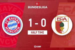 半場(chǎng)結(jié)束,拜仁1-0奧格斯堡。