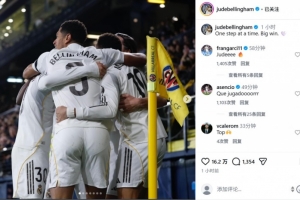 本場比賽貝林厄姆首發(fā)打滿全場,他也在個人社媒曬出本場與隊友慶祝進球合照,配文寫道:“一步一個腳印,又拿下一場重要勝利!”