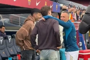 41歲的卡索拉目前效力于皇家奧維耶多,本場替補(bǔ)待命,賽前他也與巴薩球員佩德里、加維、費蘭等熱絡(luò)聊天。