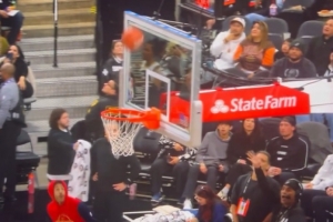 GIF-馬刺球迷半場(chǎng)超遠(yuǎn) 打計(jì)時(shí)器命中拿走1萬(wàn)美元
